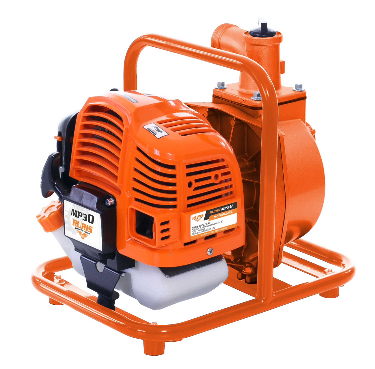 Motorna pumpa RURIS MP30 opremljena je 2-taktnim motorom, snage 1,7 KS, i može se koristiti za navodnjavanje poljoprivrednih površina.
